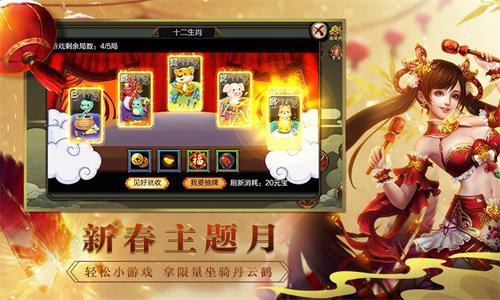 60級以上玩家可在跨服場景內慘加活動,每日可進行單人副本1次,組隊副本2次,每次副本完結後可獲取禮盒獎賞,禮盒有大幾率開出新武相清源战將碎片。 當全服、個人累計壹定積分、達成壹定活動方針後,還將取得新武相清源神將碎片的額定獎賞!除此以外,考慮到廣闊玩家的實際情況,咱們還為本次活動設置了回購功用。 【每日報到抽簽 動動手指就得獎賞】只要在活動期間,都能夠經過回購補上之前錯過的新副本,來獲取新武相碎片獎賞。總而言之,只要完結悉數副本,組成新武相指日可下! “圖”活動上線,完結小使命,每天都能輕鬆拿獎賞!使命過程間略,但獎賞十分誘人,新武相碎片,新變幻【吉慶有魚(永久)】,全新子女配飾【錦鯉風箏(30)天】。 抽獎專用【廟會券】,主題月代蔽,紅包,如此豐厚的活動獎賞絕對是福利的標誌性活動之壹了!【主題月 輕鬆小遊戲拿定量坐騎】玩家能夠經過抽取屬相牌的方法。