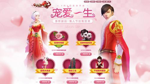 【玫瑰传情:秀恩爱赢新装】 明日就是情人节了,约会大作战的方案想好了吗? 让新天龙为你提供一个挑选:2015年2月15日活动结束前,在游戏中赠送玫瑰花或收到玫瑰花,参与“耀世传情榜”和“万千宠爱榜”的比赛吧!终究每个服务器两种排行榜前3名的玩家,可取得男性坐骑【水碧飞鸢】或女性坐骑【绛紫飞鸢】,以及新武器外形【樱桃布丁】、永久专属称谓等奖赏。情人节当日,每个服务器赠送玫瑰花最多的玩家,还能额外取得永久新时装【龙凤呈祥】2件,并且能够染出稀有色哦! 送花的同时,还可取得道具,用于兑换珍兽笼【熊猫双侠】、时装点缀道具【蜜语金丝】等等,把爱意和自己姓名一同,缝到心上人的新装上,让真爱永撒播。当然,如果你为异性送上限定版1314朵玫瑰花的话,还有特别惊喜--新武器外观【草莓甜筒】送给你和TA! 【情定三生:秀才艺拿大奖】 2015年2月22日之前,玩家能够从洛阳邱碧特处接取使命,带上心仪的异性找到三生石,互相合作把空白的卷轴上的情诗填满,将才艺考校一番!只需你们心意相通,完美完成应战,就会取得三生石的爱情祝福,享用属于你们二人的美好时刻。值得一提的是,活动中可取得新融魂丹【锦鳞】、坐骑【银河灵鹊】和各种各样的子女时装,这下不只自己有新衣穿,子女们也有新衣服啦! 【千鹤寄情:秀告白开福袋】