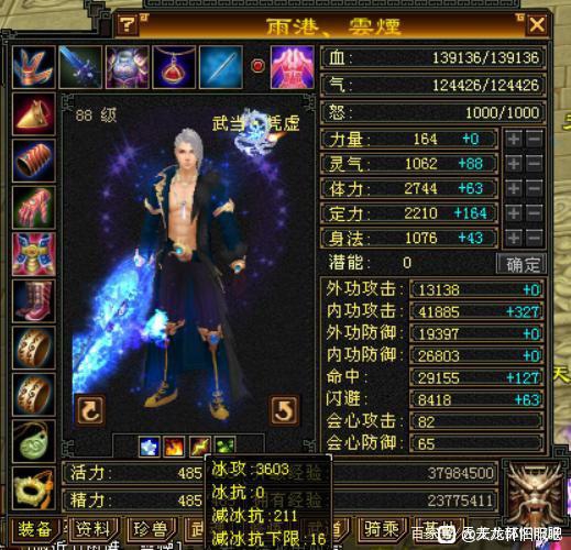 这位102级的气武当大佬比较有特色,他是从少林转为武当,又挑选了凭虚流。