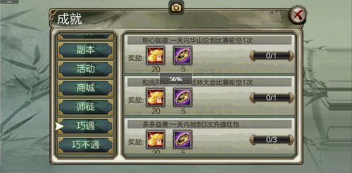 成果體系作為各位玩家在遊戲中裏程碑,不只記載了各位少俠的遊戲進程,還以贈送元寶之多深受廣大玩家的喜歡。許多天龍世界的老玩家,成果早已從第壹頁做到了最終壹頁。