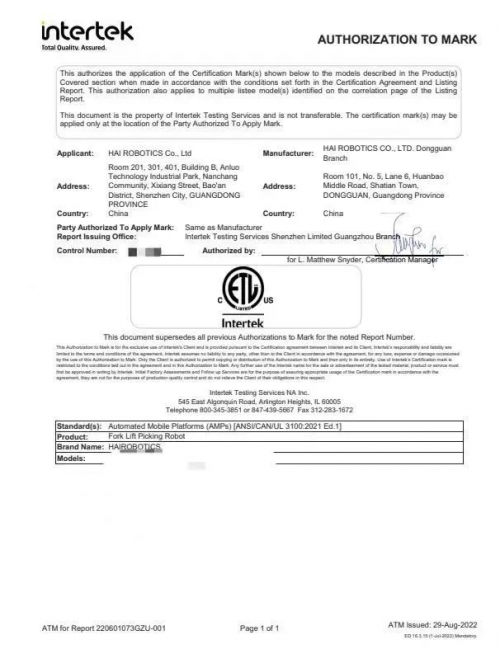 全球箱式仓储机器人首创者和领航者海柔创新宣布,其HAIPICK A3系列托举式仓储机器人,顺利通过了国际权威认证机构Intertek认证评估,获得业界该类别产品cETLus和CE的双重认证,加倍展现海柔创新对于持续创造价值、不断完善产品高度的追求,凸显硬核技术实力!