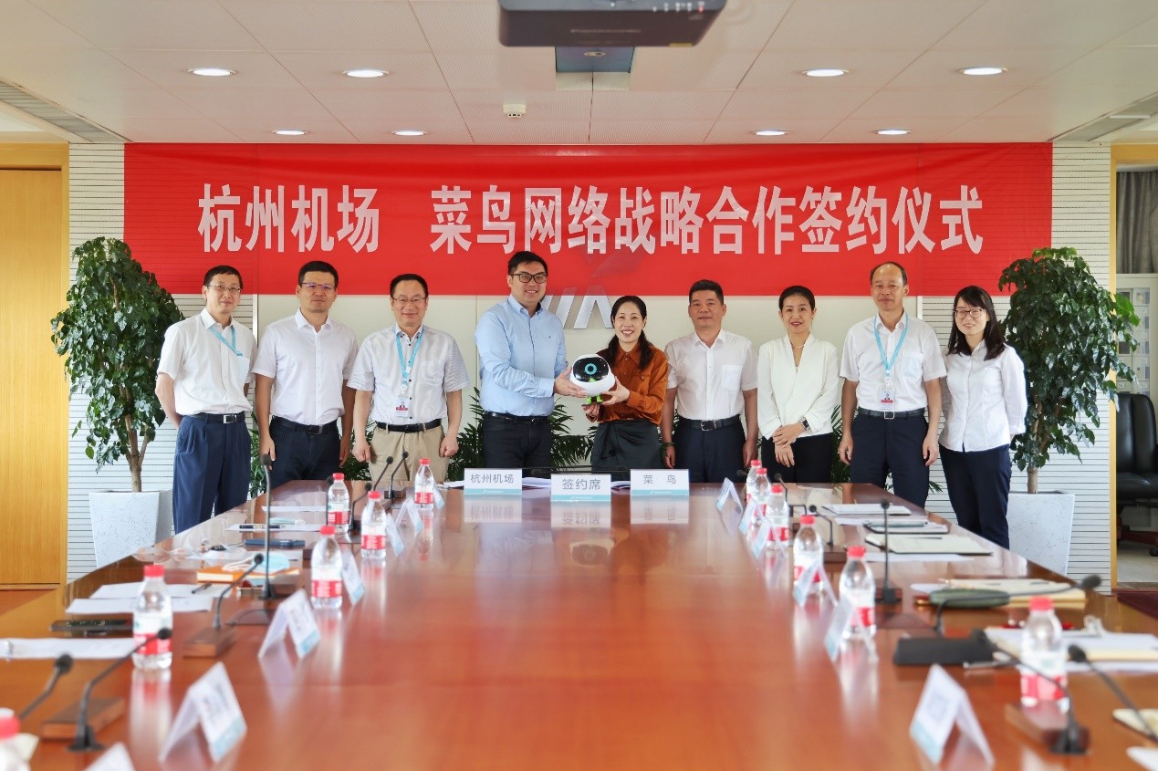 2022年6月28日,杭州萧山国际机场(以下简称“杭州机场”)与菜鸟签署战略合作协议,浙江省机场集团副总经理葛建娟,杭州机场公司党委书记蒋福敏、总经理金胜昔,菜鸟国际出口物流事业部总经理刘歆杨、跨境包裹业务部总经理巫曼等参加签约仪式。